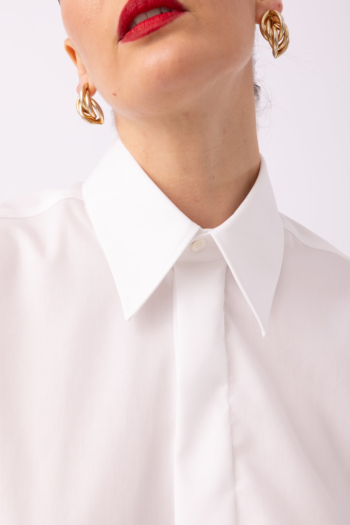 La camicia classica bianca All Hours è realizzata in popeline 100% cotone e prodotta artigianalmente in Italia. (Puglia)